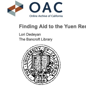 Lori Dedeyan, "Finding Aid to the Yuen Ren Chao papers BANC MSS 83/30 c"