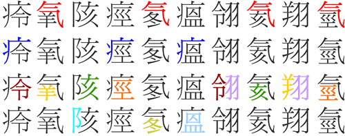 9.is het resterende karakter in de betekenisgroep van de gassen, dus hài 'helium'.