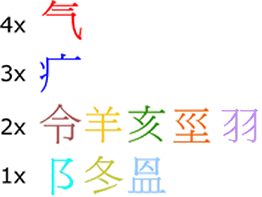 6.is het andere karakter in de klankgroep {líng, líng}, dus líng 'veer, pluim'.